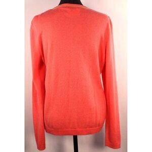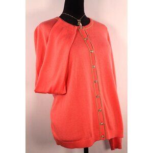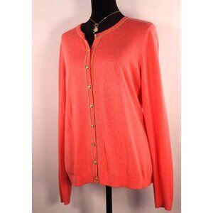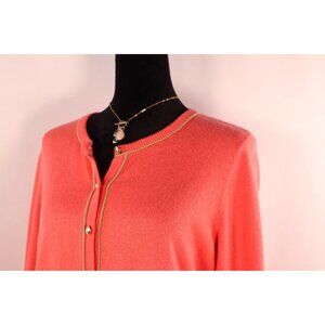 Talbots Coral Cardigan Sweater Gold Trim & metal Buttons Size M Petite