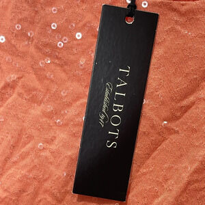 Vibrant coral tank top with shimmering sequins. Sleeveless design. Perfect for casual outings.