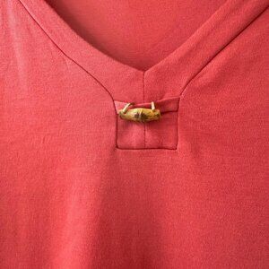 Talbots Coral V-Neck Tee with Unique Wood Accent, Size 1X