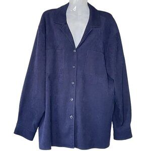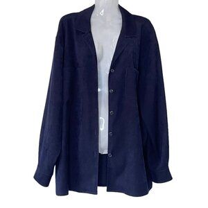 Talbots Corduroy Boyfriend Shirt Jacket Deep Navy Stretch Soft Brushed Size L