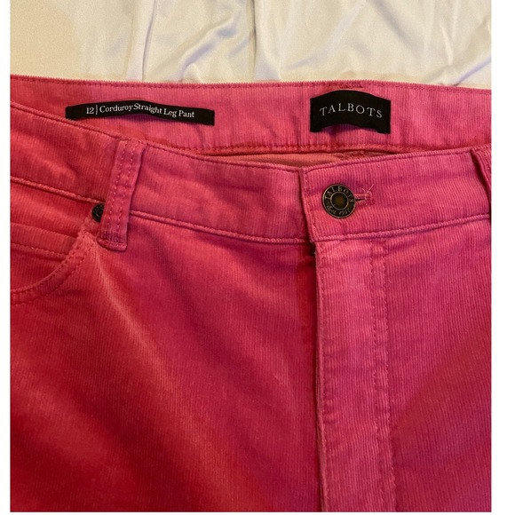 Keywords: Talbots, corduroy pants, straight leg, pink pants, size 12, casual pants, comfort fit, womens pants, mid rise, five pocket, classic style, pink corduroys, everyday wear
