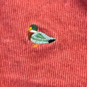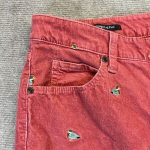 Talbots Corduroy Straight Leg Pants Womens Size 10P Pink Salmon Duck AOP Mallard
