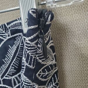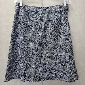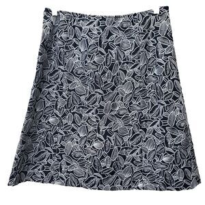 Talbots Cotton Black Embroidered Leaf Pattern Lined Side-Zip A-Line Skirt Sz 10