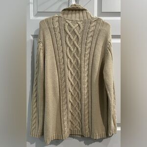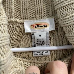 Talbots Cotton Blend Fisherman Sweater Size M Cowl Neck Cable Knit Cottage Boho