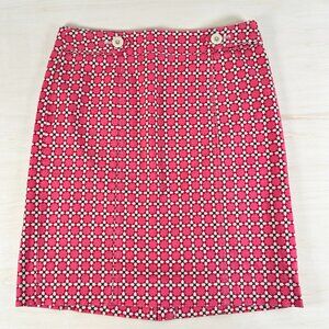 Talbots Cotton Blend Pencil Skirt Women's 8 Stretch Geometric Pink Red