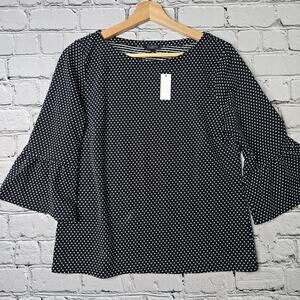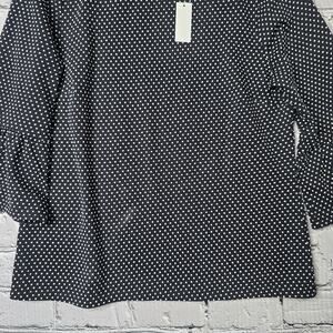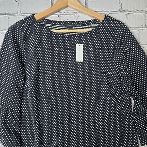 Talbots Cotton Blend Polka Dot Black White Flare Cuff Boxy Blouse New Size MP