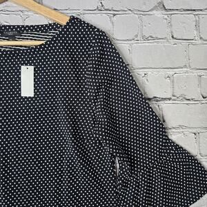 Talbots Cotton Blend Polka Dot Flare Cuff Boxy Blouse New Size MP