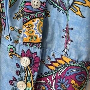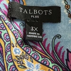 Talbots Cotton Button Front Swirly Paisley Blouse Top Women's Plus Size 3X