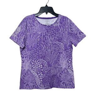 Talbots Cotton Crewneck Short Sleeve Tee in Deep Lavender/White Mp