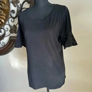 Talbots Cotton Crewneck Tee with Eyelet Bell Sleeves Large