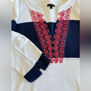 Talbots Cotton Piqué Embroidered Tunic Shift Dress – Navy, White & Pink – Size M
