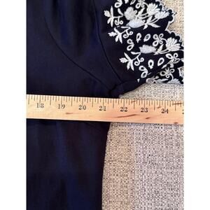 Talbots Cotton Shift Dress Navy Blue White Flower Embroidery Short Sleeve Neck Sz Xp