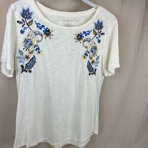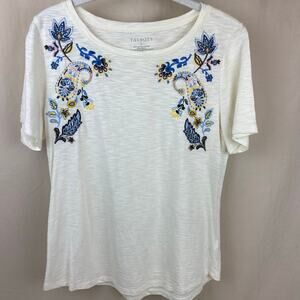 Talbots Cotton Short Sleeve Embroidered Paisley Floral Sequin Peacock T Shirts