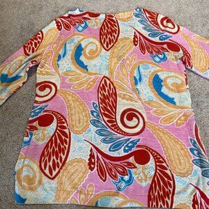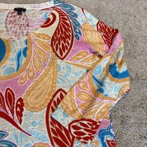 Talbots Cotton Sweater Women's Medium Multicolor Paisley Lightweight 3/4 Sleeves