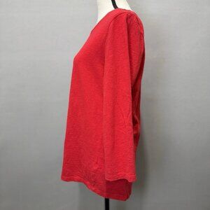 Talbots Cotton Tee Top Red Women’s Sz L 3/4 Sleeve Embroidered Dalmatian Dog Pup