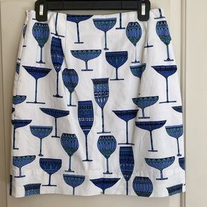 Talbots Cotton White Blue Cocktail Glasses Pencil Skirt Sz 4