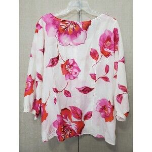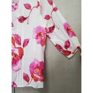 This is a Talbots Cotton/Silk Blend Sheer Floral Henley Neck 3/4 Sleeve Blouse Size XL