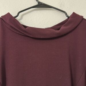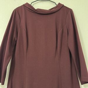 Talbots Ponte Knit Draped Neck Dress Scuba Stretchy Womens 10 Wine Career Office Business Work Zip Cowl Neck Professional Classy Old Money Corpcore Boardroom Siren 3/4 Sleeves