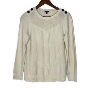 Talbots Cream Anchor Nautical Knit Pullover Sweater Size Medium Petite Women’s