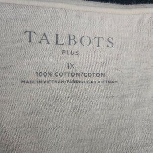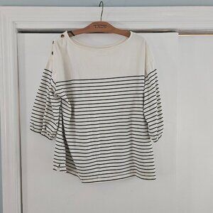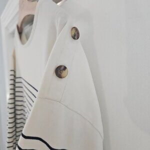Talbots Cream Black Stripe 3/4 Sleeve Button Embellishment 1X Shirt