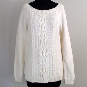 Talbots Cream Cable Knit Angora Cotton Sweater L