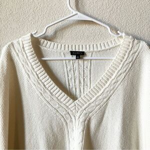 Talbots Cream Cable Knit Boxy Oversized Minimalist Contemporary Poncho Sweater M