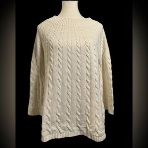 Chic cable knit design. Soft and comfortable. Ideal for layering. 100% Cotton. Beautiful piece.