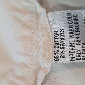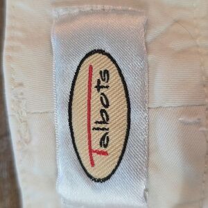 These cream cargo shorts from Talbots offer a crisp, structured appearance with a tailored fit. Crafted from a high-quality fabric, they are perfect for versatile summer styling. The mid-length cut ensures comfort and style for any casual occasion.