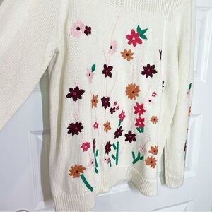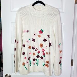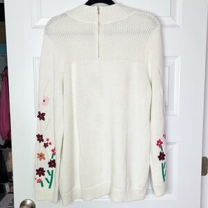 Talbots Cream Embroidered Floral Cotton Blend Mock Neck Sweater Women’s Size XL
