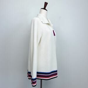 Talbots Cream Knit Stripe Collar Quarter-Zip Sweater Pullover