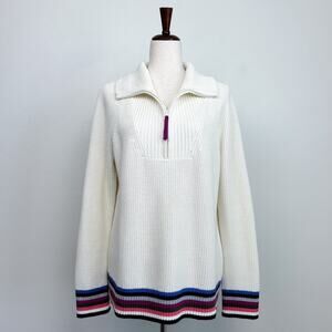 Large Talbots pullover. Quarter-zip neckline. Colorful striped detail at the cuffs and hem. Soft and stretchy rib knit fabric. No flaws, great condition!