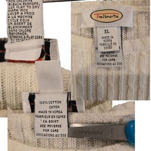 Talbots Cream Knit Sweater Floral Ruffle Hem Top Long Sleeve Feminine Chic XL EC