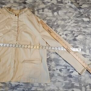 Talbots Cream Nehru Jacket Bronze Beading Stretch Women Petite 24W Vintage Plus