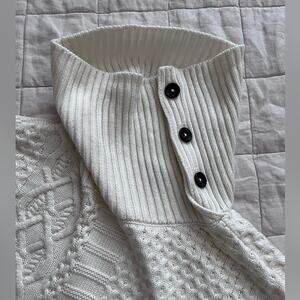Talbots Cream Patchwork Cableknit Lambswool Blend Mock/ Turtle Neck Slouchy Poncho-Large