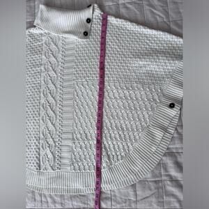 Talbots Cream Patchwork Cableknit Lambswool Blend Mock/ Turtle Neck Poncho-Large