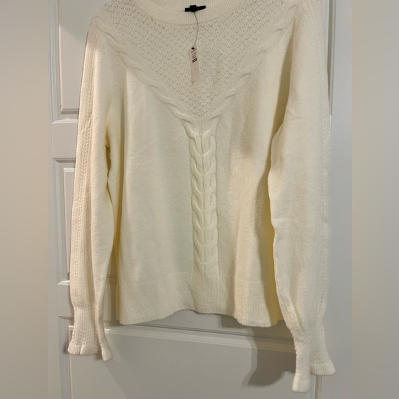 Elegant V-neck sweater with cable knit design. Soft and cozy fabric. Ideal for layering. Talbots NWT Large