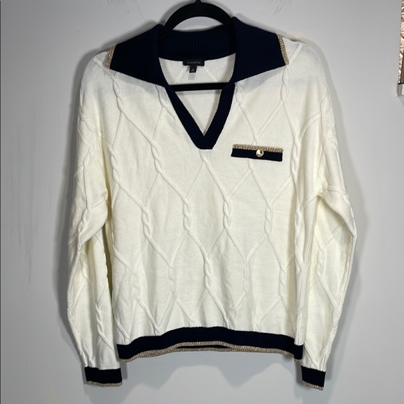 Talbots Cream and Black V-Neck Sweater