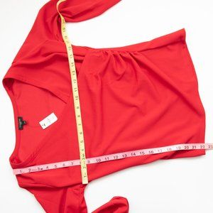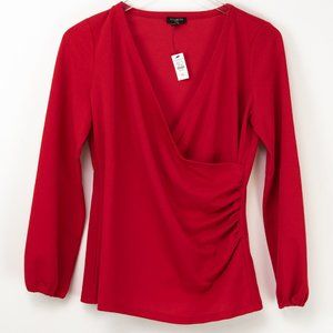 New with tags Talbots Faux Wrap Crepe Top Red Size Medium Petite. Effortlessly elegant. With poet sleeves that flow, this faux-wrap top is party-perfect.
