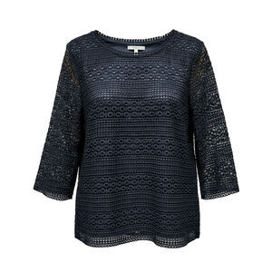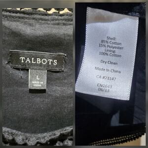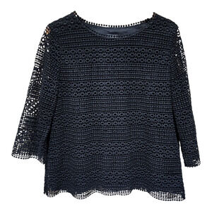 Talbots Crochet Lace Top Black 3/4 Length Sleeve Size L