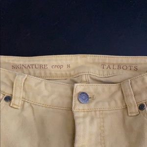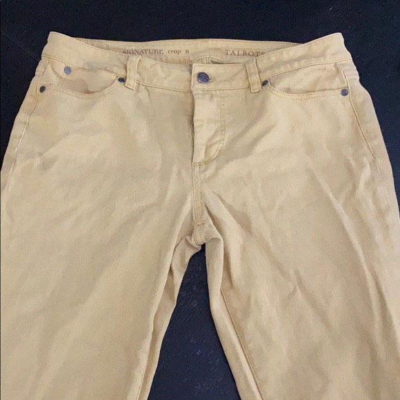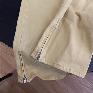 Zipper detail on ankle. Slight marks on back left pocket of pants. Light mustard yellow.