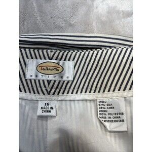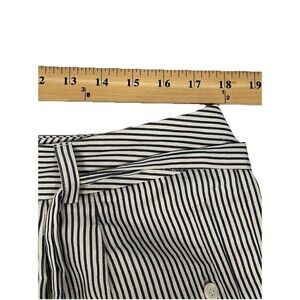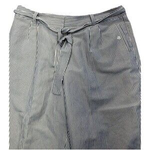 Chic Talbots Petite 16 crop pants. Silk linen blend offers breathable luxury. White blue stripes, belted, wide lega classic coastal style. Summer ready, resort wear. Effortless elegance for any occasion.