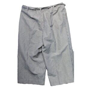 Talbots Crop Pants 16P Silk Linen Blue white Stripe Wide Leg belt high waist