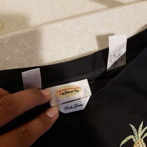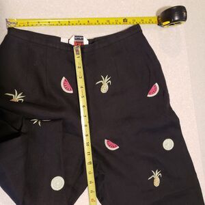 Talbots Crop Pants 8 Women's Irish Linen Black Embroidered Printed Fruit High