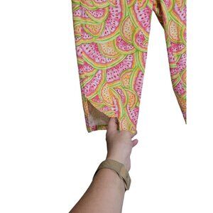 Talbots Crop Pants Womens Size 10 Vibrant Multicolor Melon Fruit Print Comfy Stretch Mid Rise Pleated Front And Back For Fit Button Zip Closure Pockets Perfect For Summer Travel Vacation Resort Wear Cruise