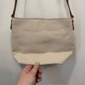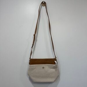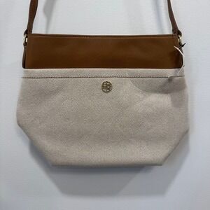 Talbots Crossbody Bucket Purse Bag Leather Trim Beige Minimal Small NEW $119