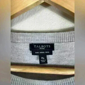 Talbots Crown Jewel Crew Neck 100% Merino Wool Gray Sweater Women's Size Mp