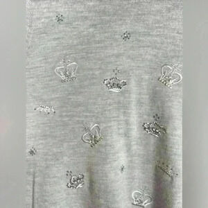 Talbots Crown Jewel Accents Crew Neck 100% Merino Wool Gray Sweater