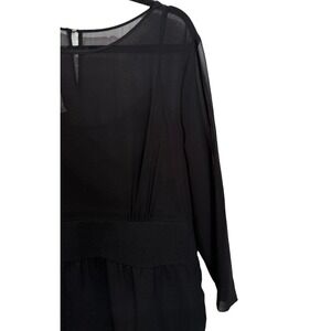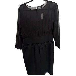 Talbots Cumberband Waist Sheer Lined Black Formal Long Sleeve Dress Size 14 NWT