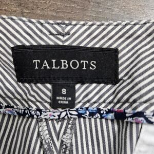 Talbots Curvy Fit Black White Stripe Cotton Pants Women’s 8 Ankle Stretch