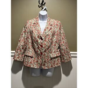 Talbots Cute Spring Floral Blazer Jacket Size 12P Red Pink Green Career